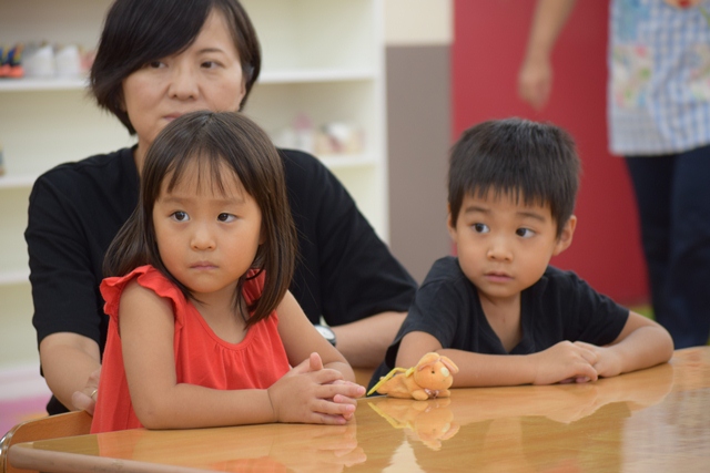親子で参加できるのもこのエンゼルキッズの良いところ。子どもたちも安心して保育室で活動できます。