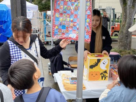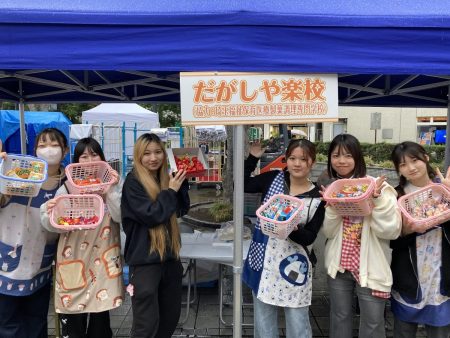 本校は毎年「だがしや楽校」という小学生を対象としたブースを出展しています。今年も子どもたちが「お仕事体験」を通して通貨を受け取り、その通貨を駄菓子と交換できるという仕組みで、遊びながら働くことの意味やお金の大切さを学ぶ内容となりました。