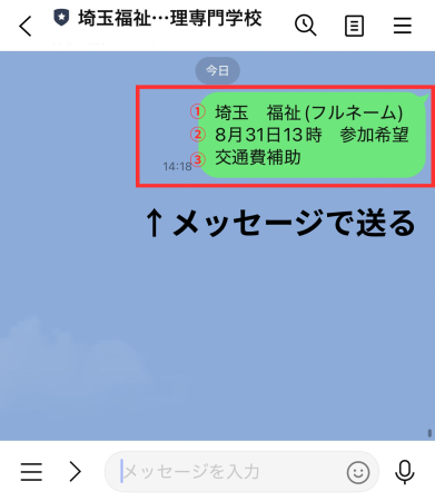STEP2、必要事項(①~③)をメッセージで送る