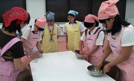 今回のテーマは「高齢者施設のおやつ」 三色白玉だんご作りを体験しました