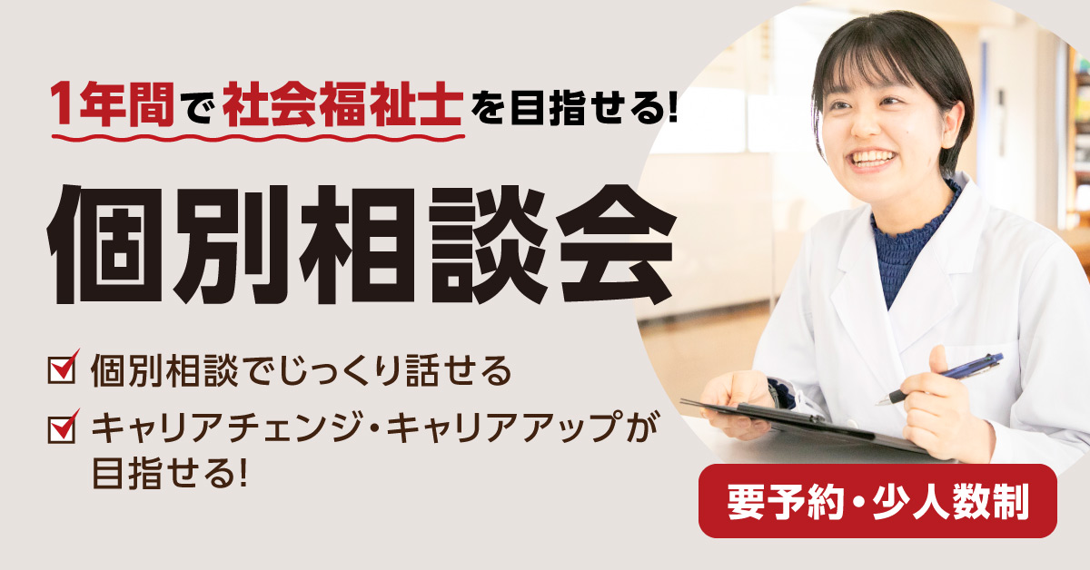 未経験からでも大丈夫!1年間で国家資格を取得&あなたらしく 社会福祉士として活躍できる道を一緒に探してみませんか? 久々の勉強、大丈夫かな…? 国家試験の不安や、就職までの道のりをご案内!